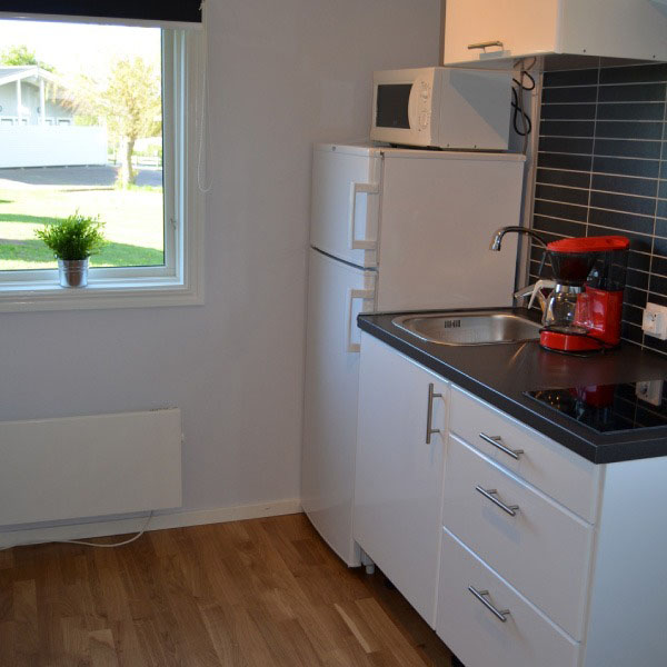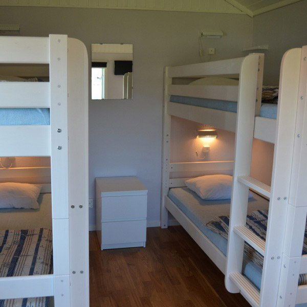 Cozy camping cabins of 15 sqm only 50 m from the fantastic sandy beach! Bright and fresh cabins with 4 beds in bunk beds. Kitchen with running cold water and drain, glass ceramic hob with 2 plates, fridge with freezer compartment and coffee maker.
